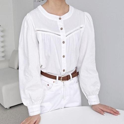 샵앤) 여성 펀칭 셔링 편한 버튼 긴팔 블라우스 WDM-WBL-KPP8056