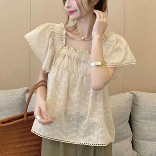[에이치플러스몰]데일리 여성 블라우스 여자 펀칭 퍼프 소매 블라우스