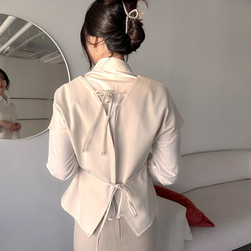 더클립 / 코즈 브이넥 백스트랩 블라우스 레이어드블라우스