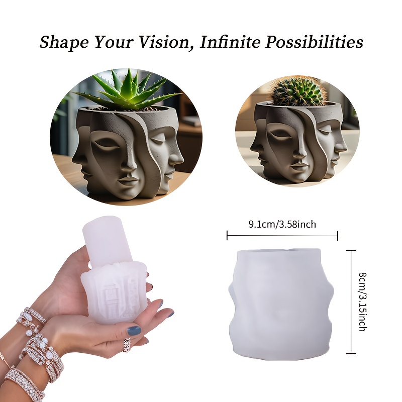 TEMU 예술적인 다면체 얼굴 실리콘 몰드 1개, 점토용 실리콘 몰드, 두꺼운 재사용 가능 실리콘 몰드, 매끄러운 내벽으로 쉬운 탈형, 간편한 세척, 가정 장식, 다육이 화분 만들기, 아로마테라피 공예용 다기능 수제 실리콘 몰드 - 수지 용도의 독특한 재사용 가능 DIY 몰드, 식물 애호가를 위한 특별한 선물