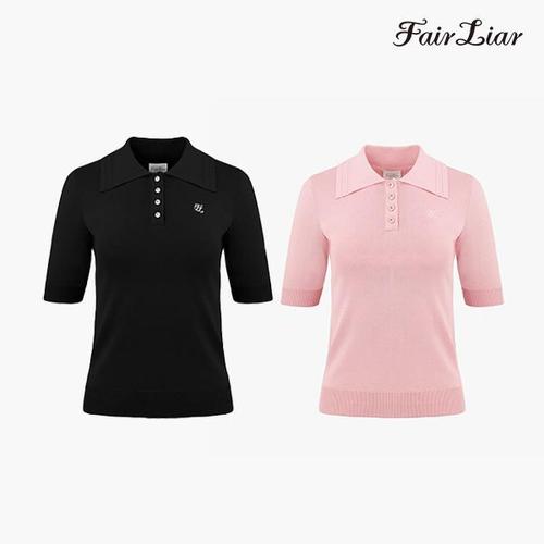 페어라이어 여성 퍼프 소매 카라 티셔츠 (블랙)