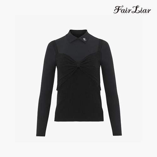 페어라이어 여성 앞 러플 카라 니트 (블랙)