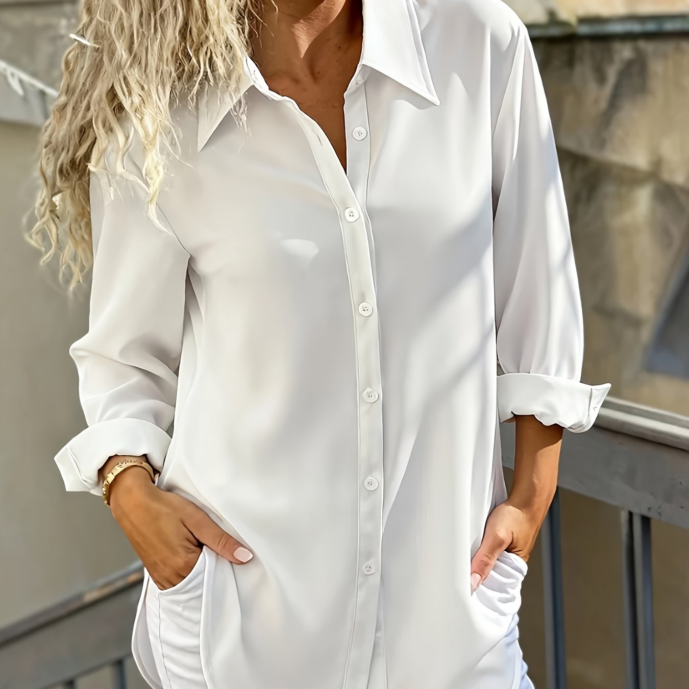 TEMU 여성용 솔리드 컬러 사계절 긴팔 셔츠, 클래식 화이트, 패셔너블 우아한 다용도 스타일 긴팔 버튼 셔츠 + 더스트 하트 디렉션