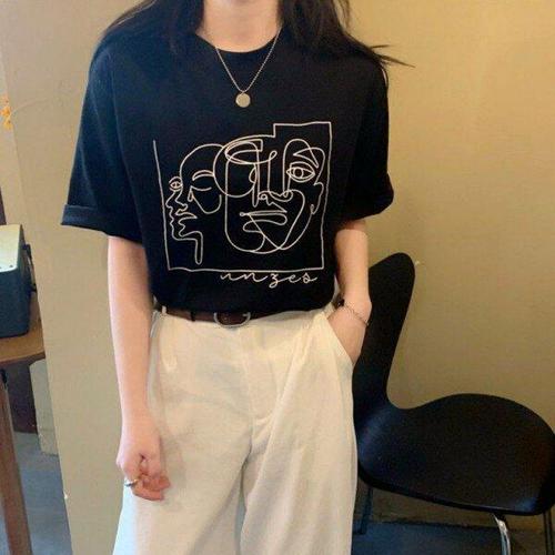 [모노무드]LMO 여성용 스테디페이스 프린트 박스핏 반소매 티탑