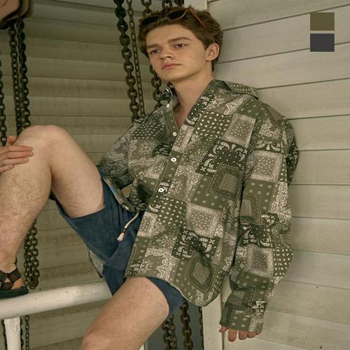 남성 루즈핏 페이즐리 패턴 긴팔 셔츠