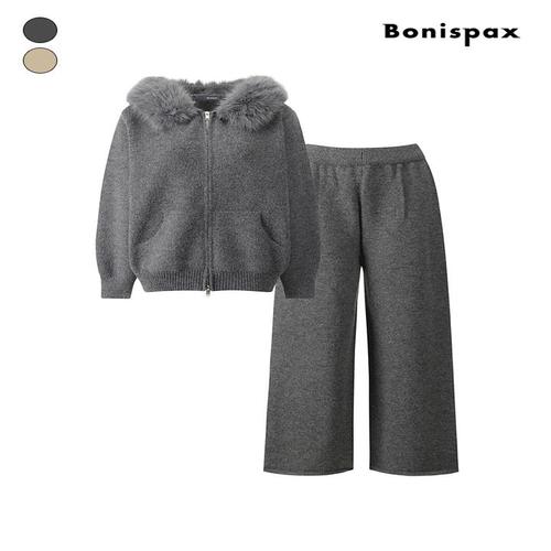 [보니스팍스]페이크 퍼 후드 집업 와이드 니트 팬츠 세트 (XPCST004M0)
