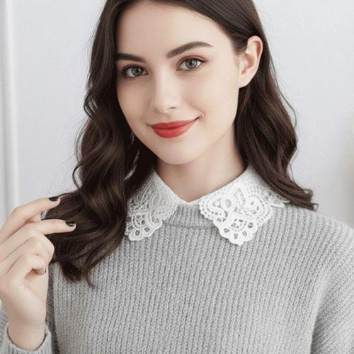 여성용 우아한 레이스 프릴 페이크 넥 카라 컬러 혼합 세트