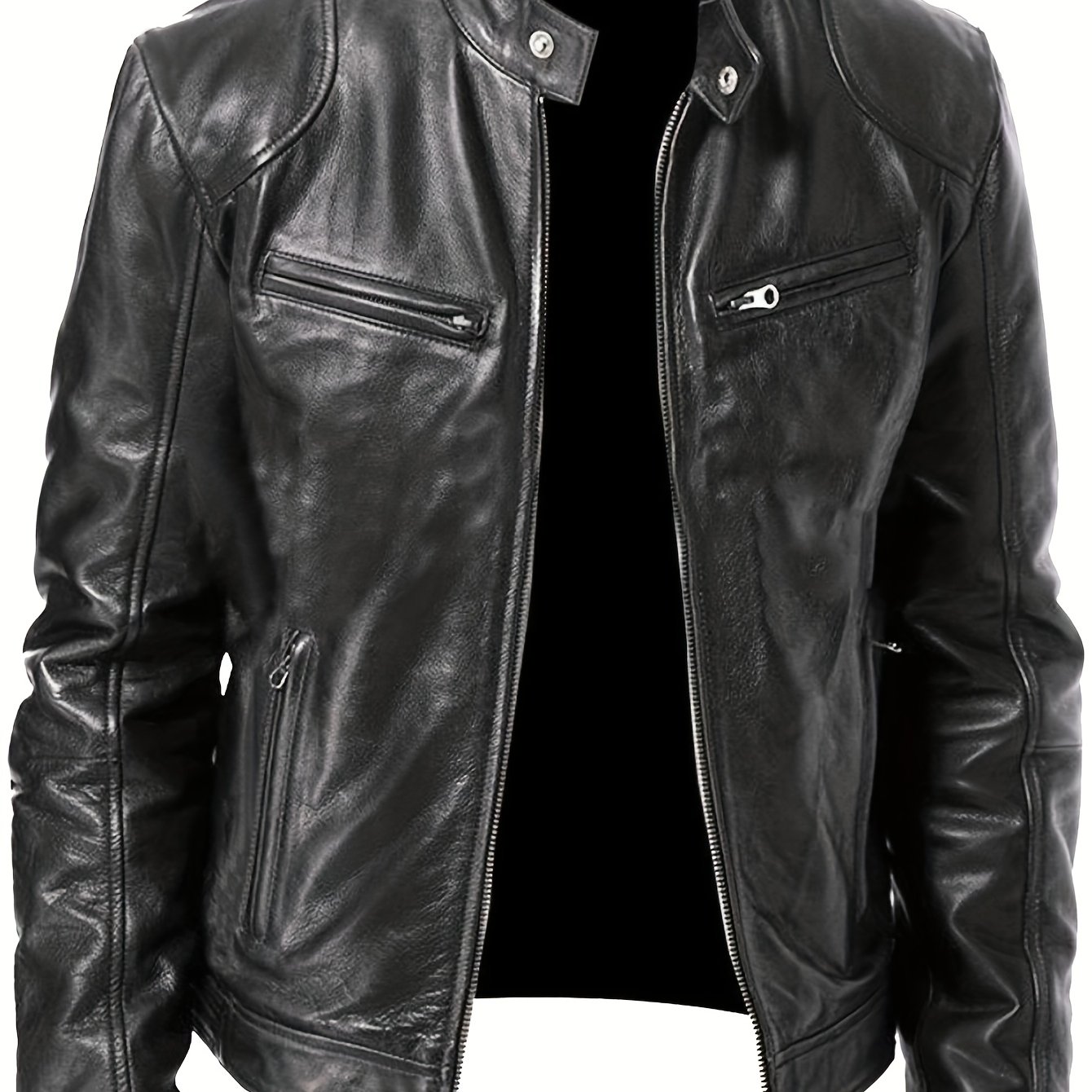 TEMU 2025년 신상 남성용 인조 가죽 스트리트 스타일 레트로 재킷, 가을/겨울 시리즈 캐주얼 아우터, 지퍼업 스탠드 칼라 및 포켓 디자인, 스타일리시하고 실용적인 유럽 스타일 남성 의류, 남자친구 및 아버지에게 할로윈 선물로 완벽