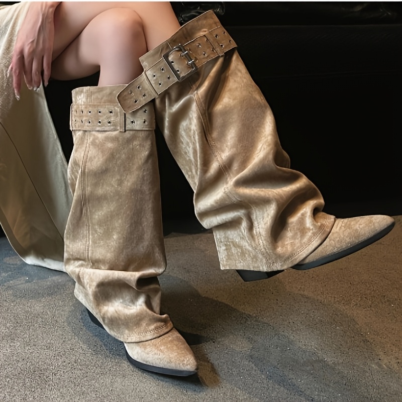 TEMU 여성용 무릎 하이 부츠 | 미국 핫 스테이플 | 뾰족한 앞코 무릎 하이 부츠 | 와이드 캐프 부츠 | 하이힐 웨스턴 부츠 | 패션 스타일링, 트렌디 스트리트 사진, 트렌드세터 아웃핏, 패션 포워드, 여성 신발에 완벽