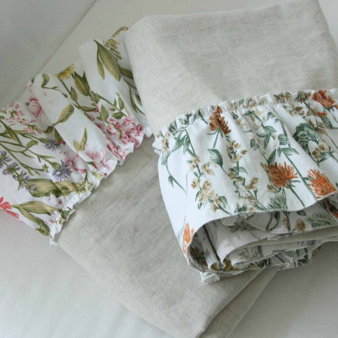 달리아플라워 린넨 프릴 직사각 4인 6인 테이블보/식탁보 2colors