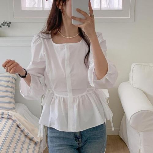 [브이와이][VY] 여자 페플럼 소매 벌룬 여성스러운 SS 들러리룩 블라우스_16600291_588847