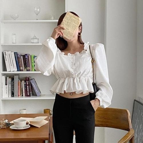 [리리앤코] 헤이데엘 퍼프 페플럼 프릴 블라우스