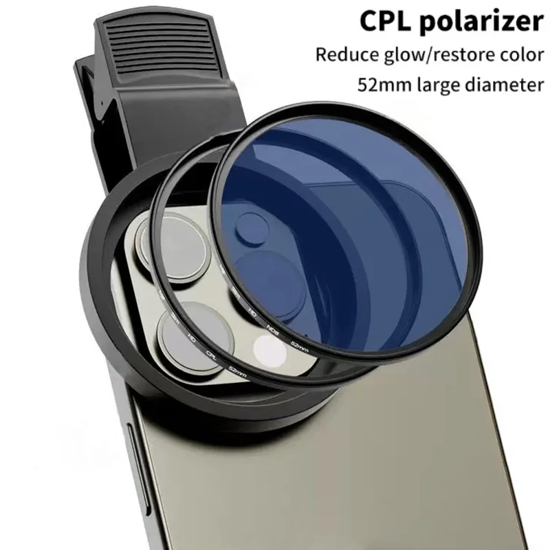 새로운 52mm CPL 휴대폰 렌즈 필터 렌즈 클립 카메라 액세서리 원형 편광 필터 (캐논, 니콘, 모든 스마트폰 호환)