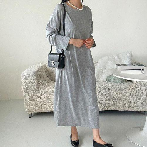 [에이치플러스몰]여성 루즈핏 반팔 롱원피스 편안한 원피스 데일리룩