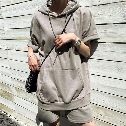 [엄지척]데일리 반팔 후드 편한 반바지 여름 여자 세트_20436423_667501