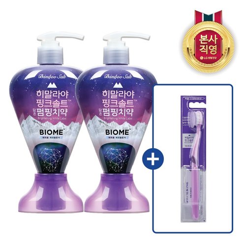 히말라야 핑크솔트 바이옴 펌핑치약 285g x 2개 (+ 퍼플 화이트닝 칫솔 1입)