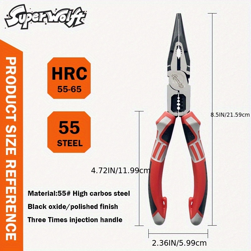 TEMU 니들노즈 플라이어, 8인치 콤비네이션 플라이어 긴 니들노즈 플라이어 와이어 스트리퍼 크림퍼 커터 렌치 기능, 전문가용 니들노즈 플라이어 전기 공구
