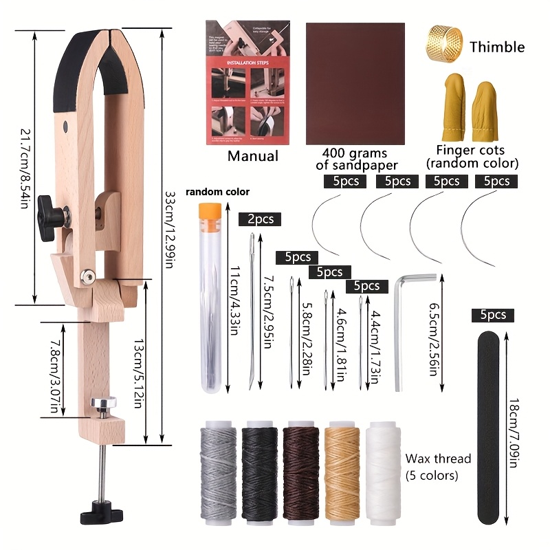 60개 가죽 작업 키트 재봉 공예 도구 보관 가방 스탬핑 스티칭 그루버 왁스 실로 제작 및 펀칭을 위한 프롱