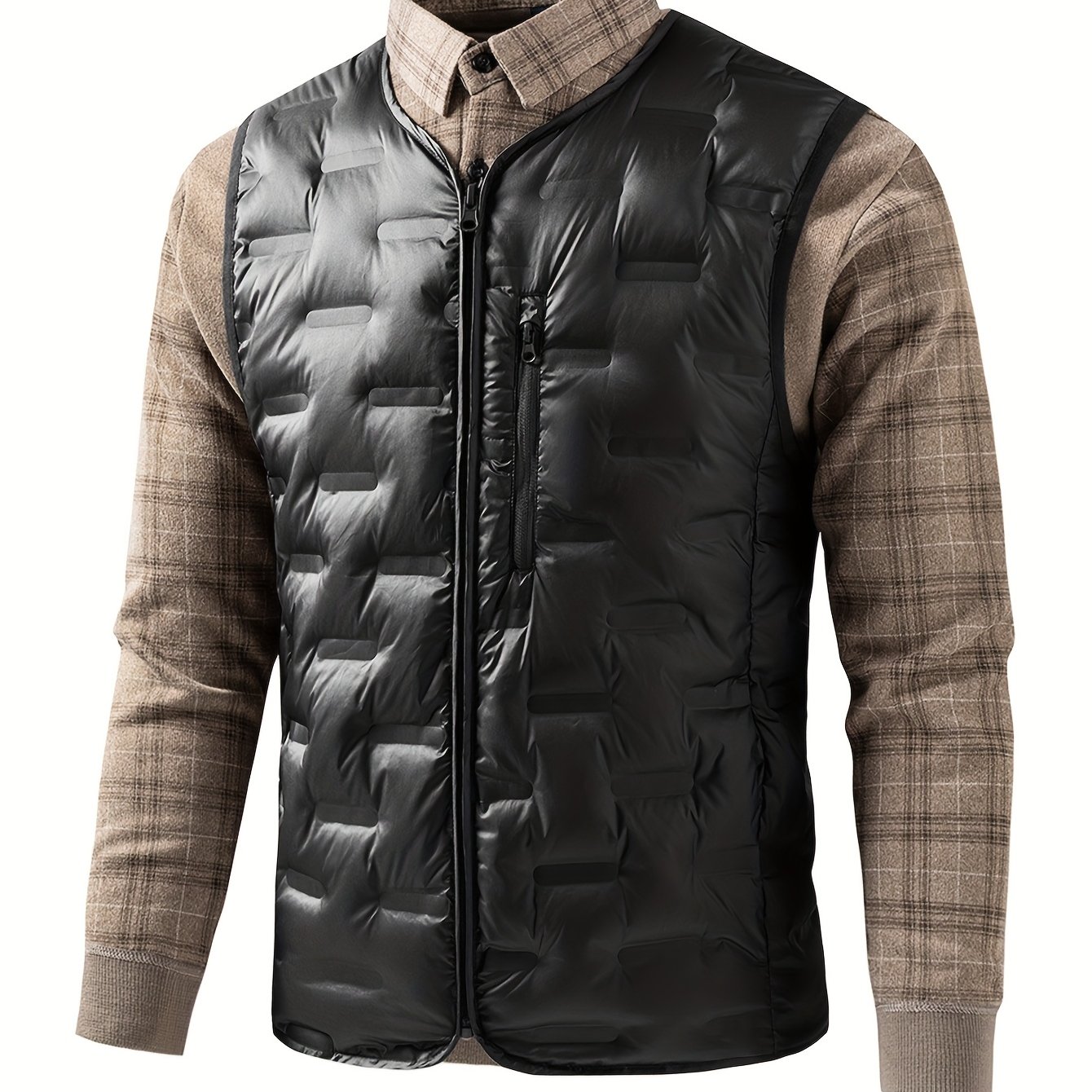 TEMU ROMON 남성용 민소매 퍼퍼 조끼 - 가벼운 회색 다운 재킷 지퍼 포함, 캐주얼 착용용 따뜻하고 스타일리시한, 추운 날씨 조끼 | 조끼 | 스티치 퀼팅