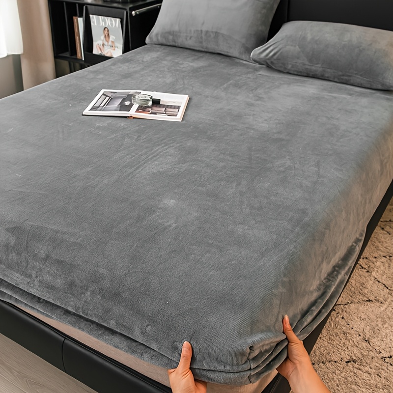TEMU 겨울 플러시 매트리스 장착 시트, 단품 매트리스 커버, 산호색 도톰한 밀크 벨벳 침대 커버, 싱글용 풀커버형 보호 시트