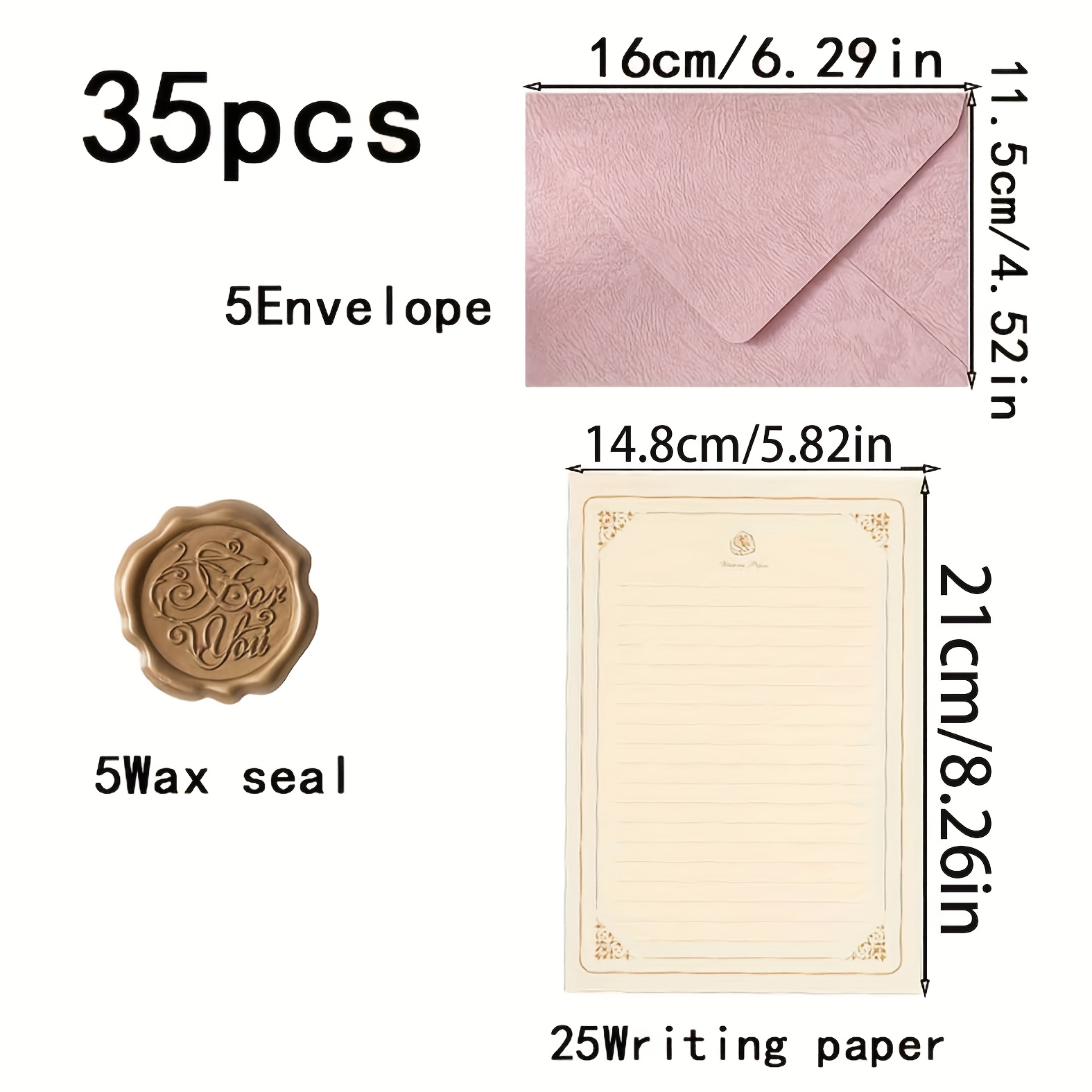 TEMU 35개 나무 패턴 텍스처 봉투 세트, 결혼식 초대장 카드, 인사말 카드, 엽서 봉투, 파티 생일 초대장, 사랑의 편지 포함, 25개의 편지지 및 5개의 봉투 + 왁스 씰 5개|실링왁스