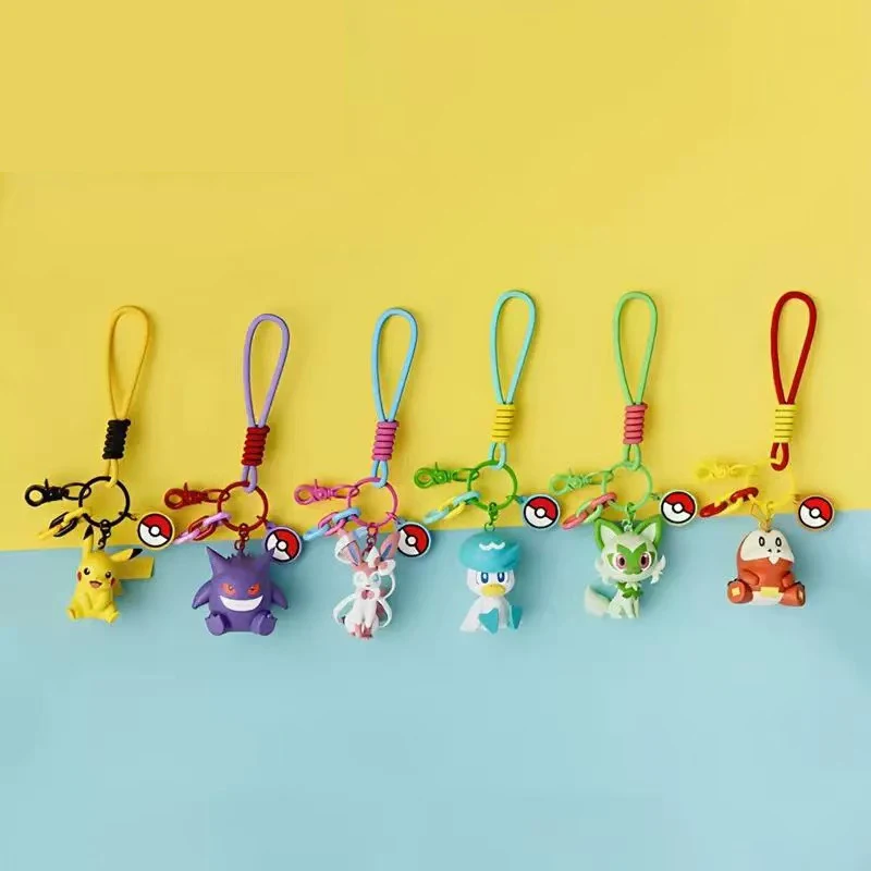 정통 포켓몬 피카추 키 체인 GENGARSPRIGATITO QUAXLY FUECOCO SYLVEON 만화 인형 펜던트 어린이 선물 장난감