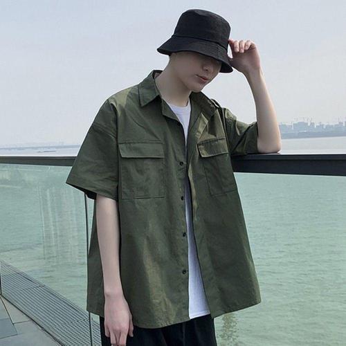 남자 반팔 셔츠 포켓Oversized 여름 셔츠 WFMAO33