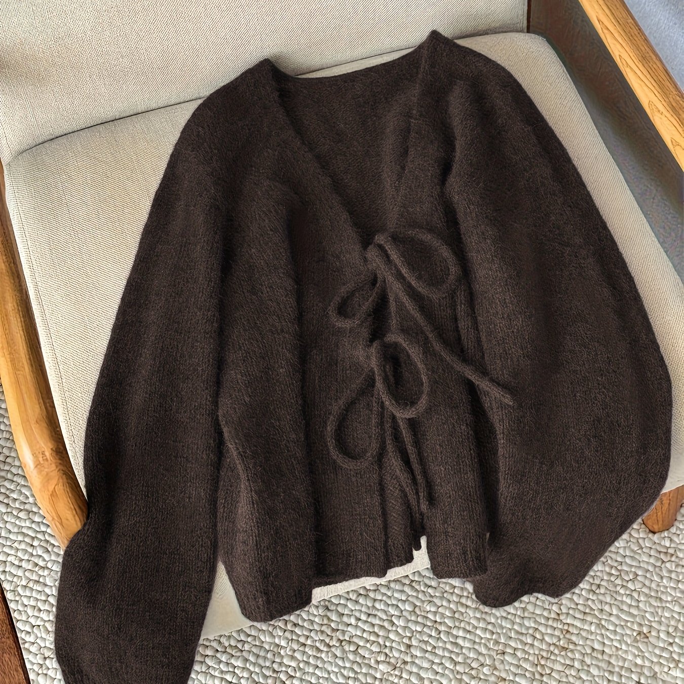 TEMU 트렌디 패션 프렌치 엘레강스 여성용 단색 긴팔, 앞면 타이 카디건, 가을 겨울에 적합