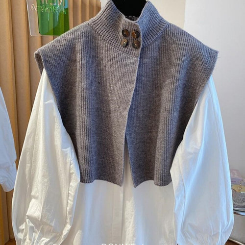 보니제이 / 니트 짜임 4버튼 민소매 탈부착 하이넥 + 라운드넥 화
