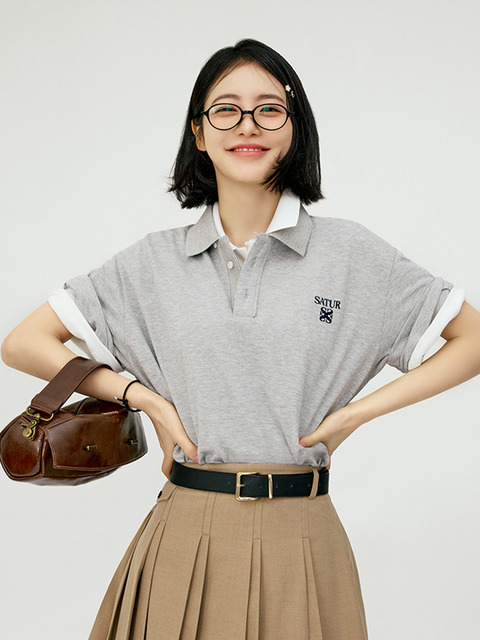 [세터] 로렌 피케 폴로 반팔 티셔츠_멜란지 그레이
