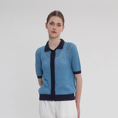 [유닛]린넨 혼방 폴로넥 스카시 니트 가디건 [UFJKCA254N-BLUE]