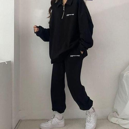 프린트 강조 컴포트룩 룩 여성용폴로카라 컴포트 하프집업 셋업