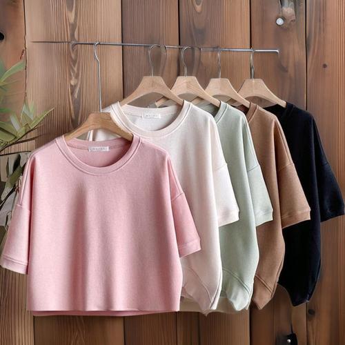 옷자락 / 여성 오버핏 면 폴리 온벌 둥근밑단 반팔 티셔츠