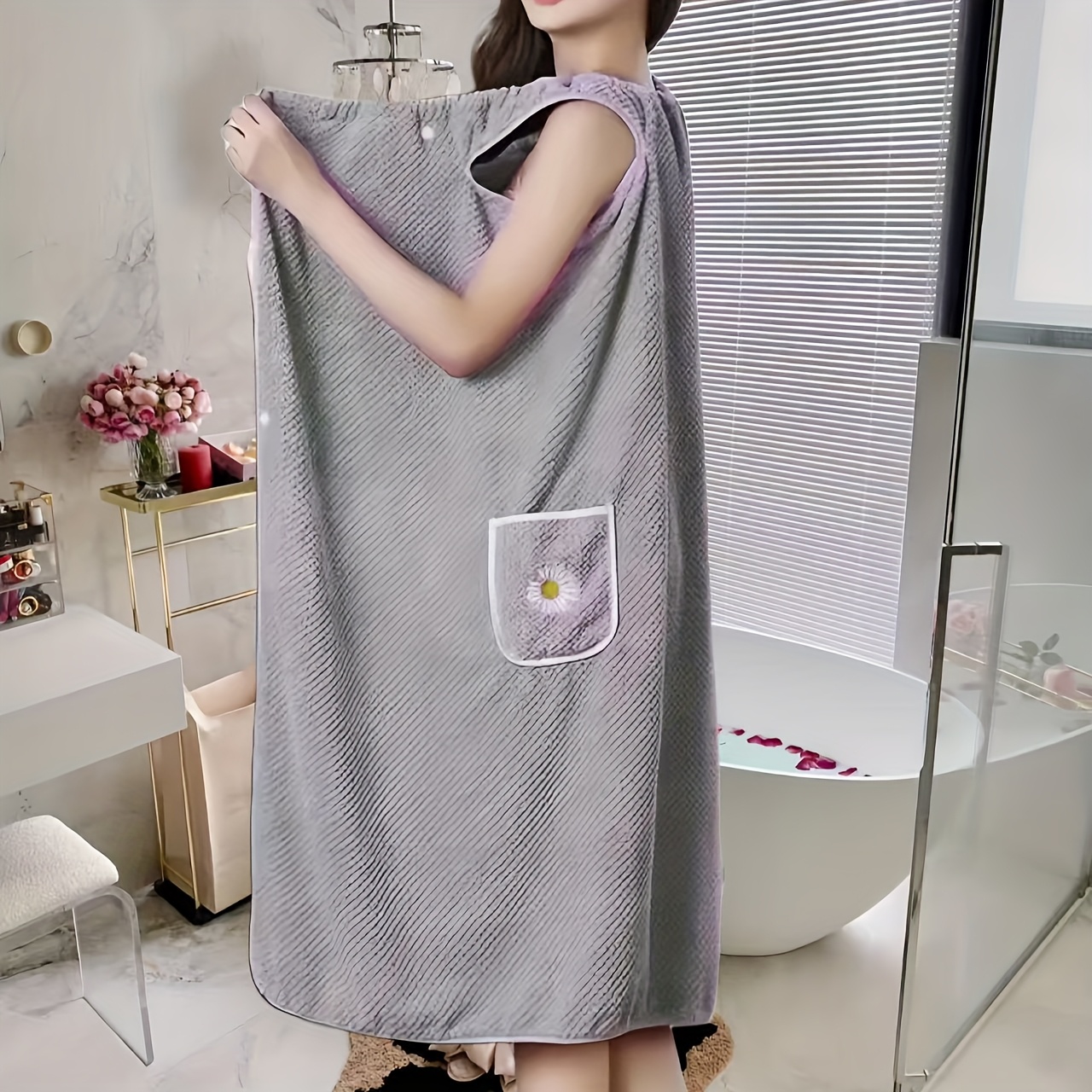 TEMU 1개 플로럴 패턴 웨어러블 목욕 타월 - 성인 솔리드 컬러 목욕 스커트 - 포켓형 속건성 목욕 가운 - 긴 목욕 타월 - 욕실 용품 - 사우나 반바지 스파 랩 - 욕실 추가품|샤워커튼|샤워가운