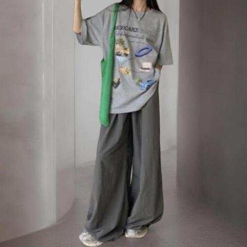 [옷자락]여성 루즈핏 폴리에스터 그래픽 반팔 와이드 바지
