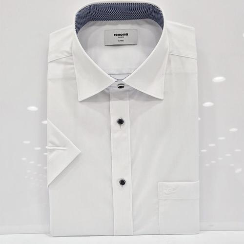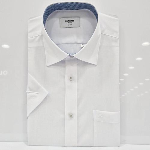 [레노마셔츠]일반핏/반소매/폴리스판 평직 솔리드 여름와이셔츠 RQUSG1601 WH_US