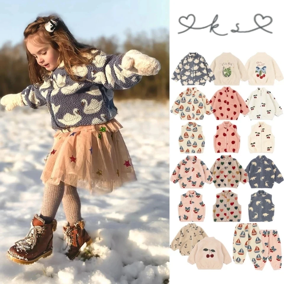 2025 KS 브랜드 겨울 아기 소녀 소년 양털 체리 재킷 어린이 옷 소년 반짝이 만화 외투 어린이 코트 1-9세