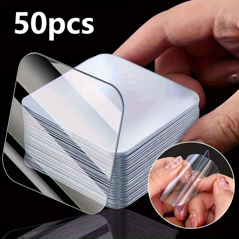TEMU 50개 강력한 양면 투명 테이프 - 드릴 또는 못 필요 없음, 플라스틱, 유리, 금속, 돌, 건식 벽용 강력 접착제 - 투명, 손상 없는 제거, 가정, 사무실, DIY, 공예, 표지, 라벨용 - 실내/외부 사용에 이상적, 공예 재료, 은밀한 장착, 잔여물 없는 접착제