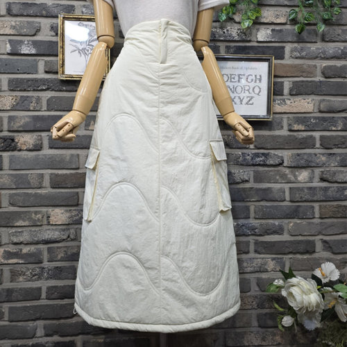 퐁당 / 양포켓 물결 스티치 누빔 방한 패딩 스커트