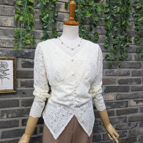 퐁당 / 기모 스판 레이스 브이넥 블라우스