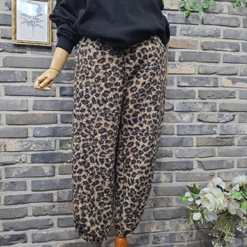 퐁당 / 호피 레오파드 부클 기모 밴딩 조거팬츠