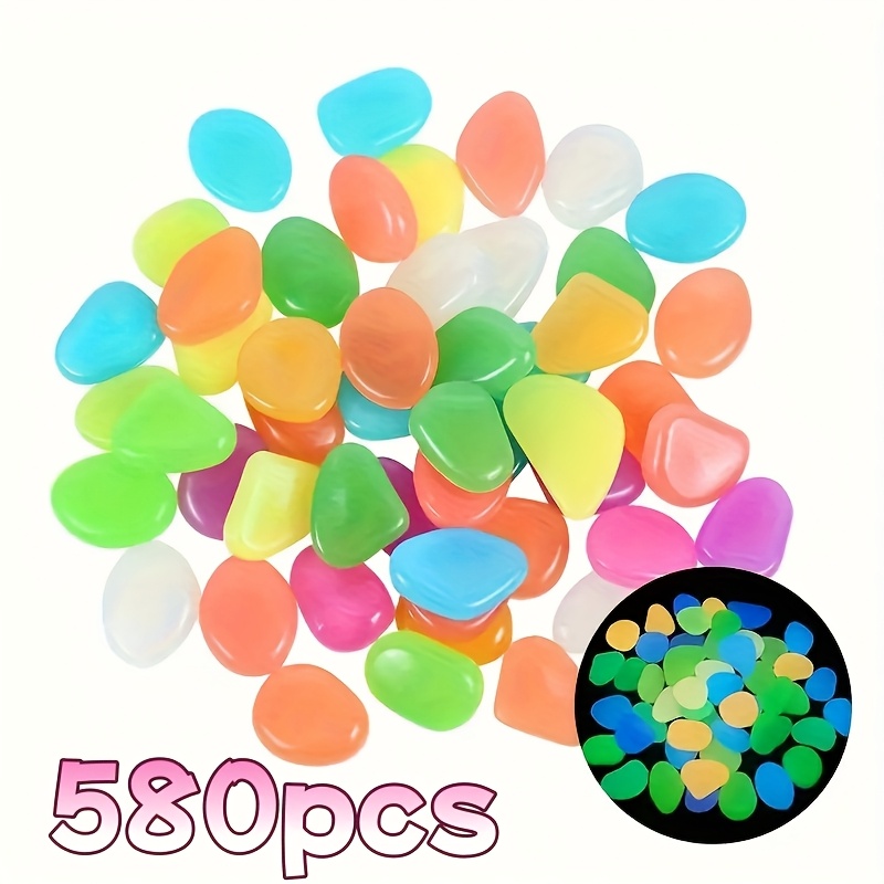TEMU 1봉지 (580개) - 광택 있는 실내외 장식용 돌 - 녹색, 파란색, 분홍색, 네온 컬러의 내구성 강한 레진 자갈 - 정원, 수족관, 웨딩, 길목, 테이블 센터피스용 - 화려한 조경용 자갈, 홈 가드너를 위한 매끄러운 마감의 장식 소품