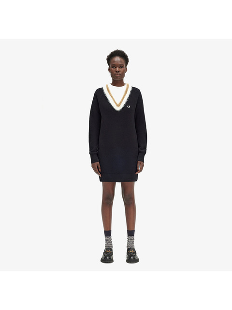 [프레드페리] [Womens] 텍스쳐드 트림 브이넥 니트 드레스 - 블랙 AFPF2438166-102