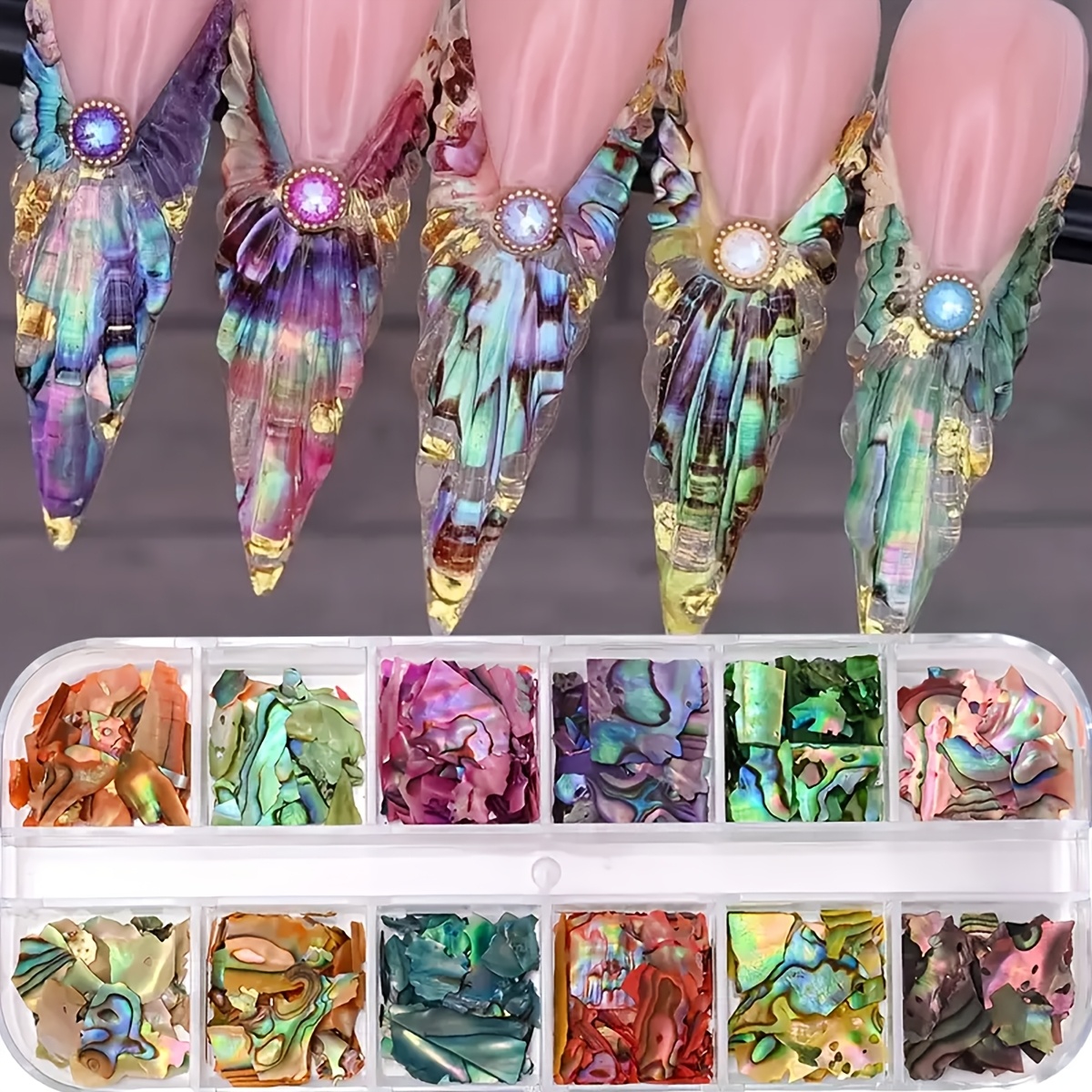 TEMU 12개입/박스 컬러풀 쉘 네일 아트 액세서리, 불규칙 쉘과 미세 쉘 네일 장식, 네일 아트 용품, 내구성 있는 네일 장식