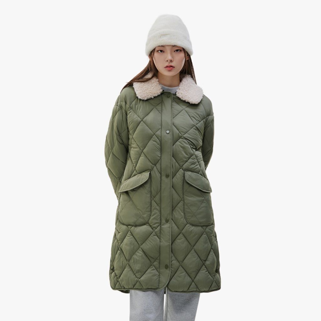 [프로스펙스]여자 카키 양털 셔츠넥라인 퀄팅 롱패딩자켓 / 프로스펙스 여성용 겨울 롱점퍼 PS3WJ24W712_IC