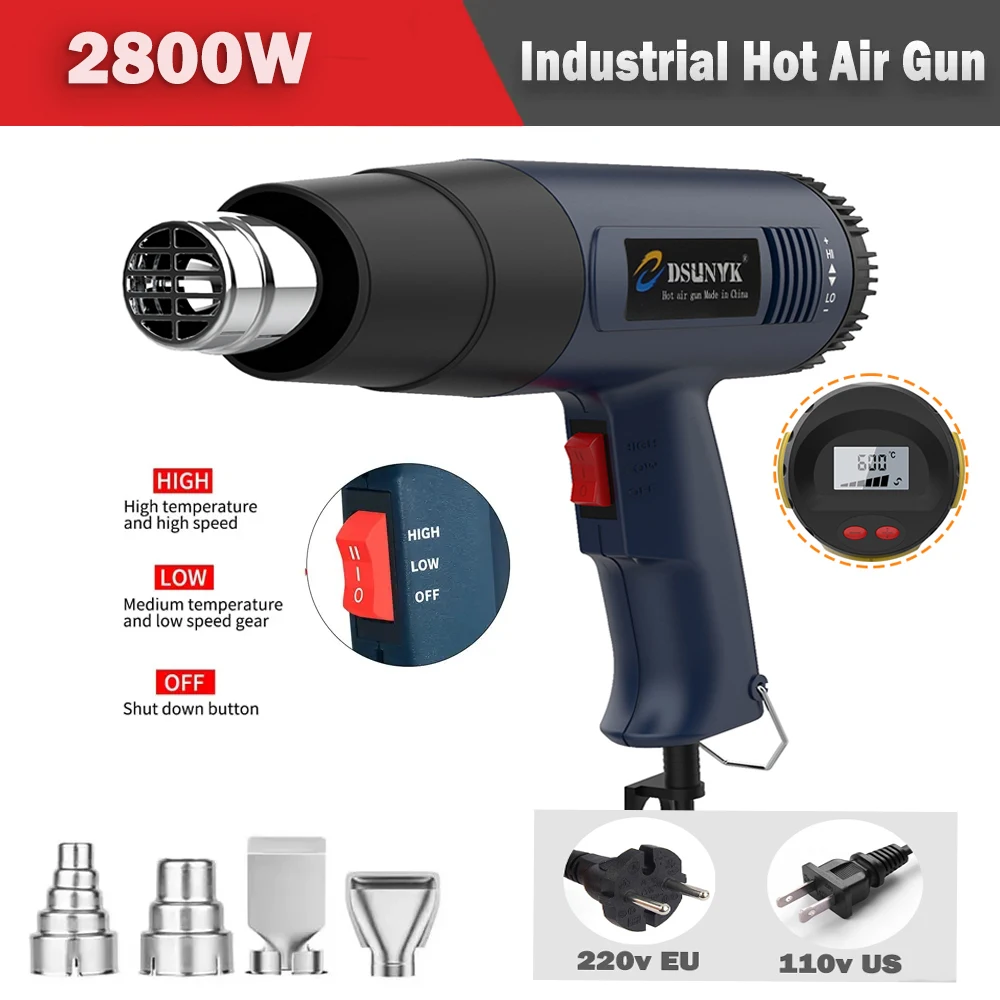 2000W 산업용 전기 열풍기 디지털 디스플레이 자동차 필름 열풍기 에어 드라이어 납땜용 열풍기 수축 포장용
