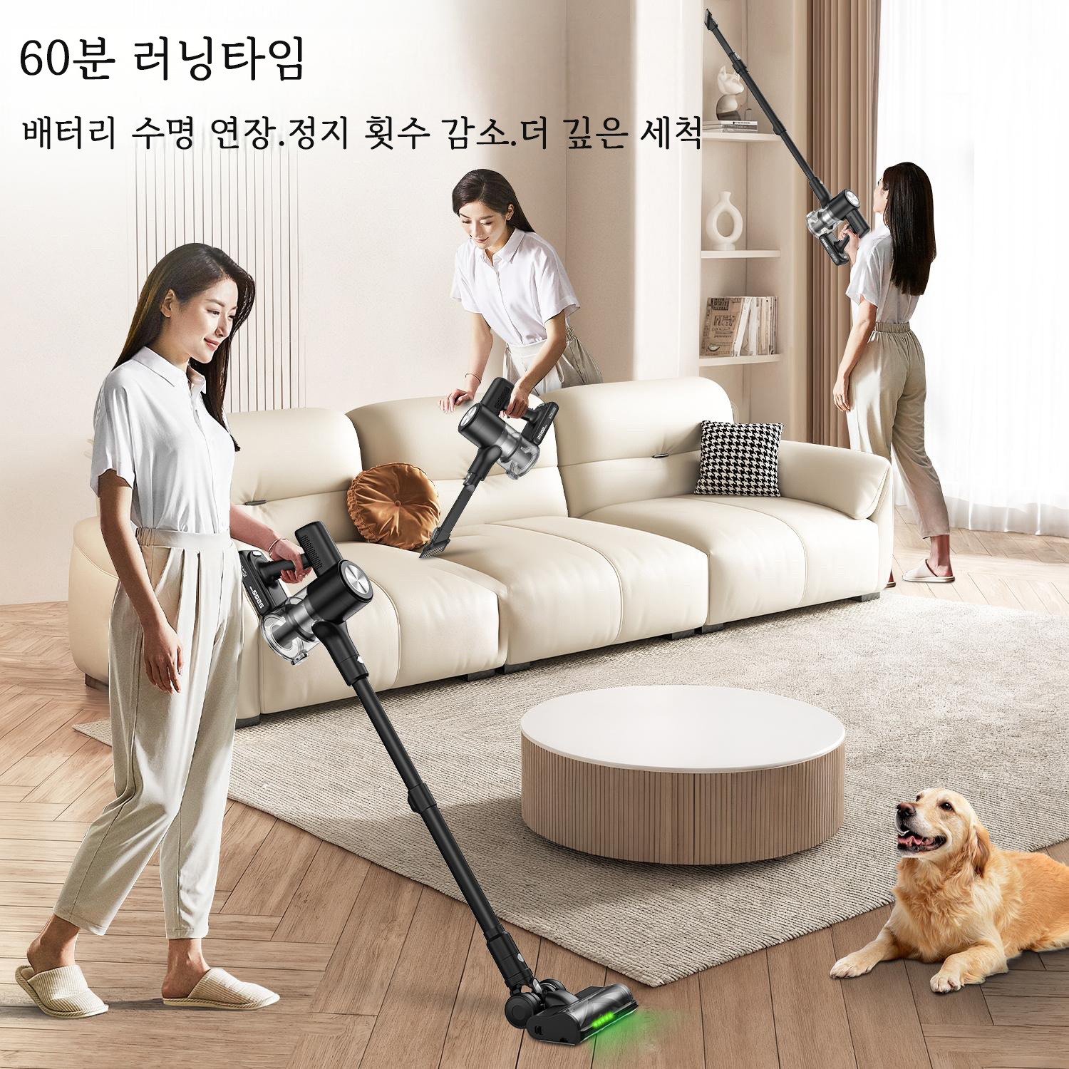 TEMU 45 Kpa 고성능 무선 진공 청소기, 배터리 수명 60분, 가정용 자립형 충전식 진공 청소기, 벽면 장착 충전 지원, 업그레이드된 꼬임 방지 녹색 불빛 바닥 브러시, 반려동물 털/카펫/나무 바닥에 적합.
