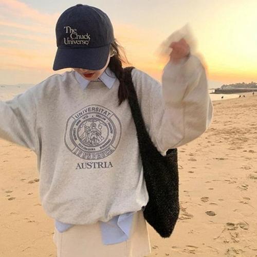 [엄지척]여성 유니버시티 프린팅 캐주얼 오버핏 맨투맨티셔츠_19627990_667501
