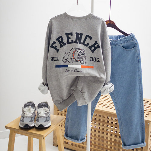 프린팅 인기 캐주얼 상하의 여자 감성 기모 맨투맨 조 루즈핏 밴딩상하 밴딩 상하세트