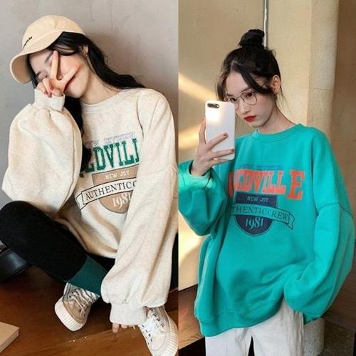 [엄지척]여성 라운드넥 유니버시티 프린팅 오버핏 맨투맨 티셔_19626382_667501